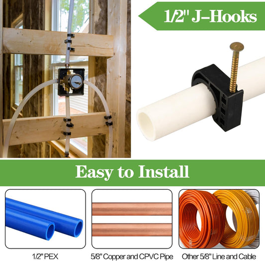 200 Pack 1/2" J-Hook Half Clamps Set with Nails for PEX, Copper, CPVC Tubing Connections