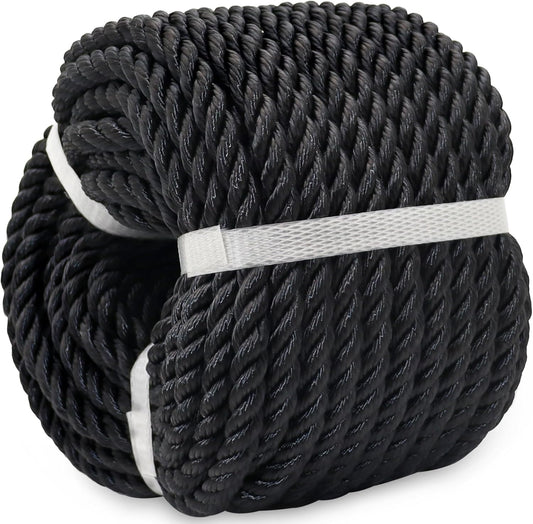 Heavy Duty BONSINY Black Twisted Polyester Rope - 3/8" x 100' Utility Rope for Swing, Camping, Sailing, and Pulling - Outdoor Rope