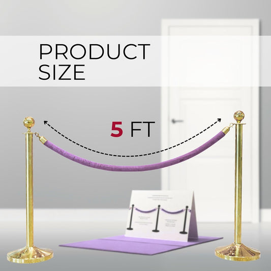 Light Purple Velvet Rope Set for Hotel Lobby VIP Stations - 4-Piece Chambridge Queue Posts with Twisted Ropes and Snap Hooks for Special Events