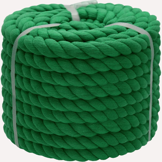 100 Feet 1 Inch Thick Green Cotton Rope for Spring Decor, Railings, Hammock - Indoor/Outdoor Sports & Tug of War