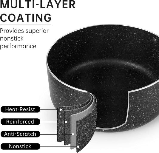 Nonstick Saucepan Set with Glass Lid - 2Qt and 3Qt Non Stick Small Pot for Home Kitchen