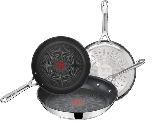 T-Fal Tefal E304S344 Jamie Oliver Stainless Steel Pan Set, 3 Sizes (20-24-28 cm)