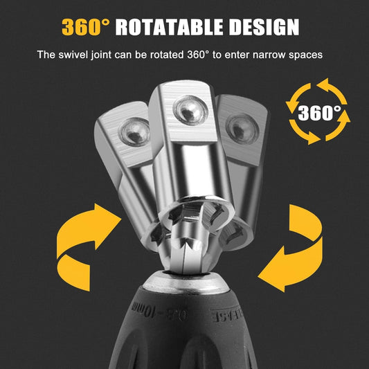 Universal Joint Swivel Socket Set for Impact and Power Drills - 360 Degree Rotatable Adapter with 1/4 Inch Hex Shank