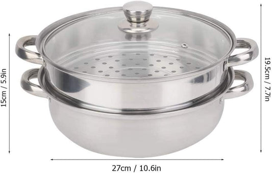 Stainless Steel 27 cm Steamer with Double Boiler Soup Function for Cooking