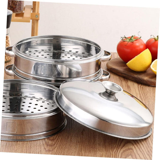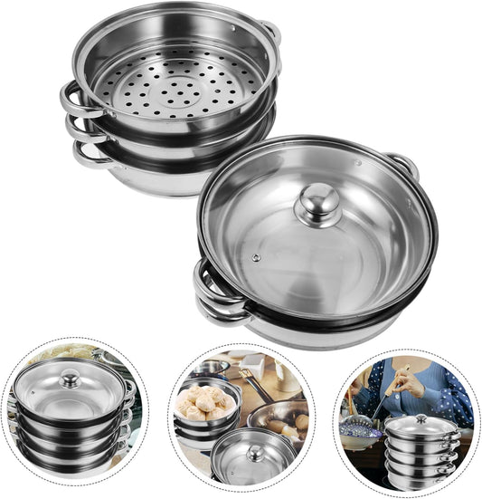 3-Piece Stainless Steel Steamer Set for Cooking Dumplings, Chicken, Rice, and Eggs - Portable and Durable Steam Basket Pot