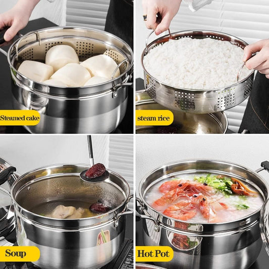 Stainless Steel Double-Layer Steamer Cooking Pot Set - TELoni Saucepan, Milk Pot, and Pans