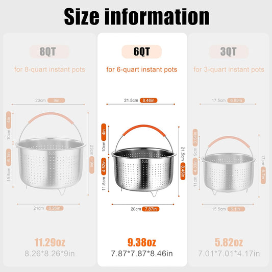 Stainless Steel 6 Qt Food Steamer Basket for Instant Pot - Cook Veggies, Fish, Seafood, Pasta, Dumplings, and More efficiently
