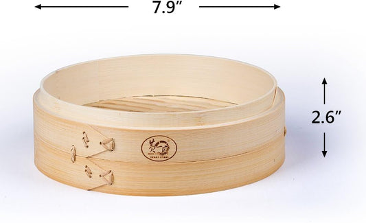 Bamboo Steamer Set with 1 Tier, 1 Lid - Chinese Traditional Kitchen Tool for Food Cooking - 8" Mini Steamer Basket