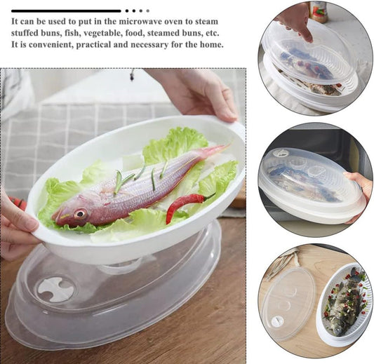 Hemoton 1 Set Fish Plate with Lid and Pasta Steamer Pot - Dim Sum & Bun Steamer with Ginger Grater Plate - White Vegetable Steamer Basket