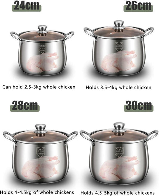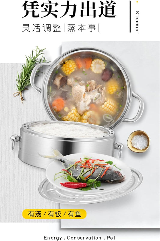 Large Capacity Stainless Steel Steamer/Stock Pot for Gas Stove/Induction Cooker - 30cm/32cm/34cm - Household/Commercial Use