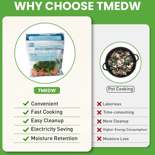 10 Pack TMEDW Steam Cooking Bags for Vegetables, Seafood, and Meat - Microwave and Freezer Safe
