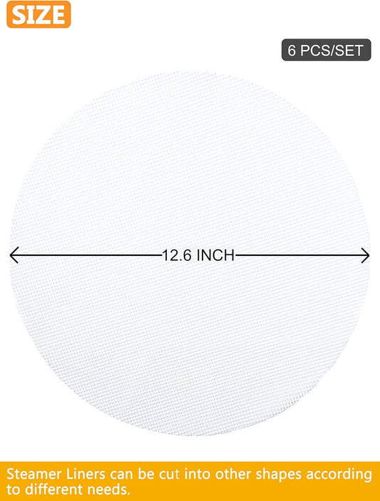 6 Pack Bamboo Steamer Liners, 12.6" Non-Stick Silicone Mesh, Reusable Round Dumpling Pad