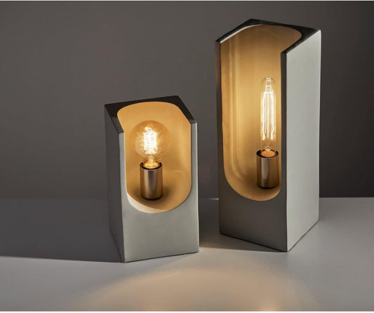 Adesso 3694-03 Clyde Tall Table Lantern - 16.5 in, 40W Tube, Cement with Brushed Steel Accents