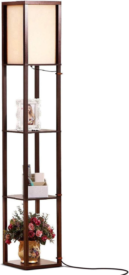 Set of 2 Brightech Maxwell Floor & Table Lamps with USB Port - Modern LED Lamps for Bedrooms and Living Rooms - Soft Ambient Light, Wood Frame, Brown Finish