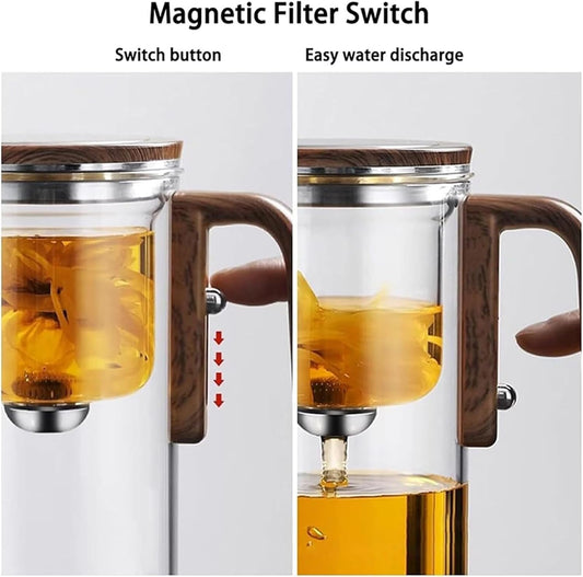 Clear Glass Tea Pot with Removable Infuser and One-Button Press Filter - 720ml Witchcraft Tea Kettle for Loose Tea - Gray
