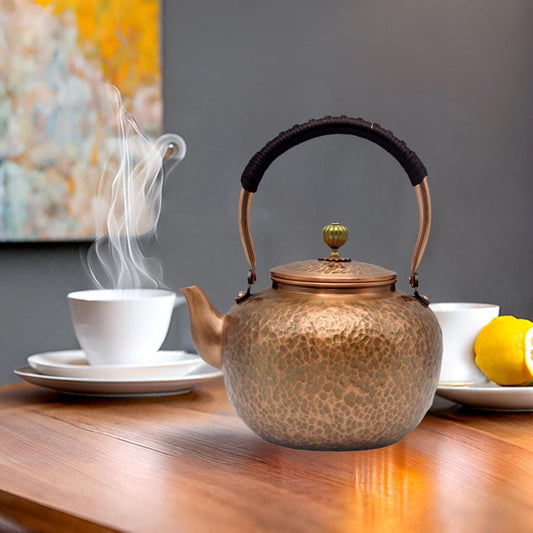 Elegant Chinese Style Copper Tea Kettle with Stainless Steel Infuser - 50.7oz Capacity - Non-Coating Pure Copper Teapot for Stovetop - Large 1500ml Solid Tea Pot