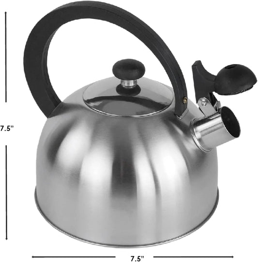 Large Capacity 304 Stainless Steel Whistling Tea Kettle for Induction, Gas, Electric Stoves - 2.6 Quart