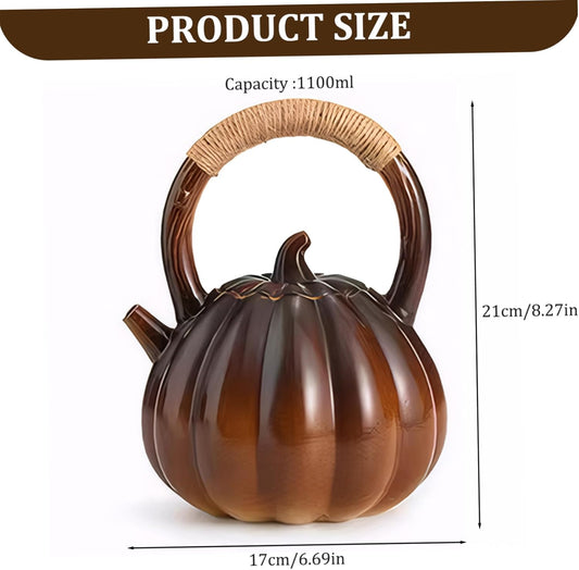 Large 1100ml Ceramic Pumpkin Teapot with Handle & Lid - Whistling Tea Kettle for Stove Top