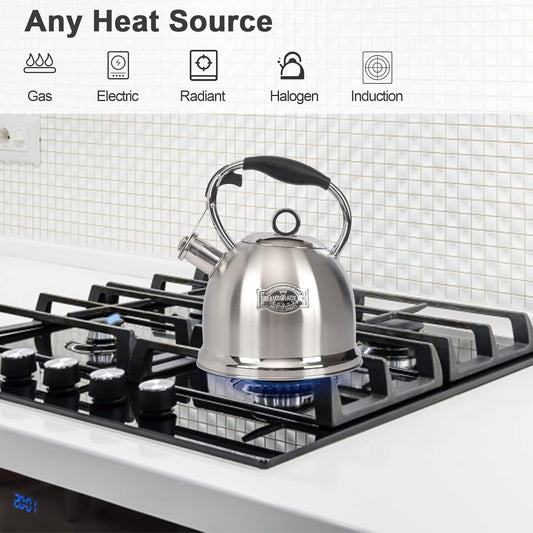 4L Stainless Steel Whistling Tea Kettle for Fast Boiling on Induction Cooker or Gas Stove