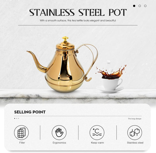 Stainless Steel Tea Kettle with Infuser Filter, Golden Stovetop Teapot for Fast Boiling Tea and Coffee - Small 1.8L