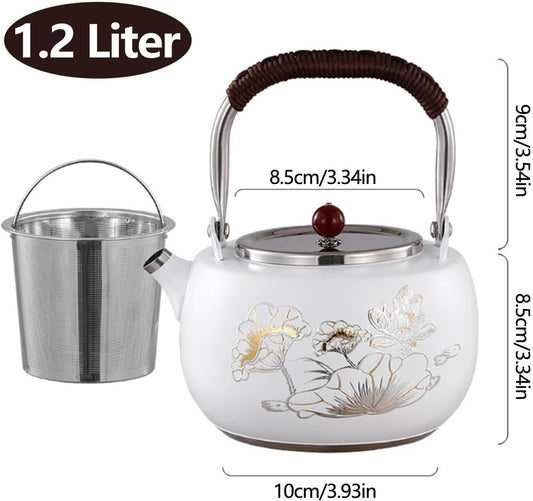 Retro Japanese Enamel Tea Kettle for Camping Stove - Luxshiny Small Pot for Loose Tea - Enamelware Teapot Bowl
