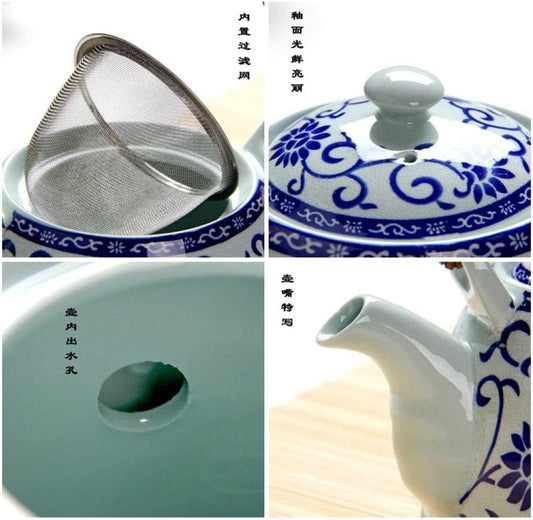 Blue and White Porcelain Ceramic Teapot - Large 1000ml Capacity, Heat-Resistant Tea Pot with Filter - Retro Chinese Teaset - Style A - Universal Size