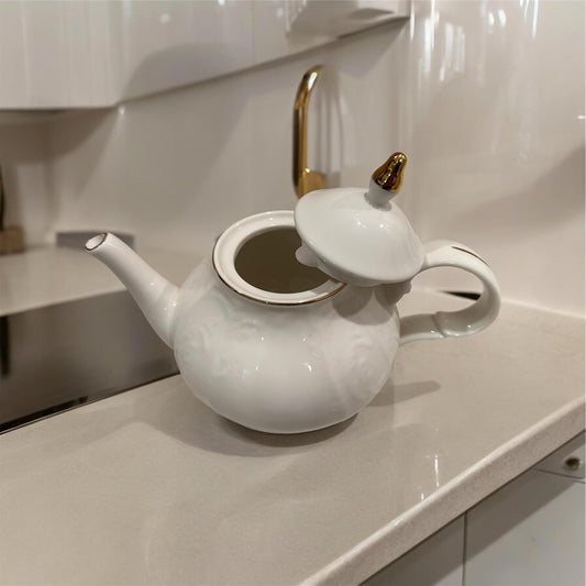 Elegant Vellezza Porcelain Teapot with Gold Trim and Lid