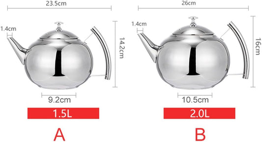 Stainless Steel Tea Kettle with Small Spout and Strainer - 1.5 Litre Capacity for Coffee or Tea