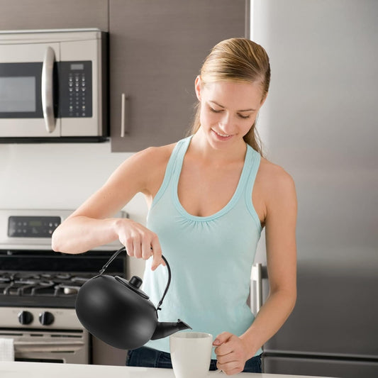 Black Cast Iron Teapot with Infuser and Enamel Interior - Stovetop Safe Tea Kettle for Coffee and Tea