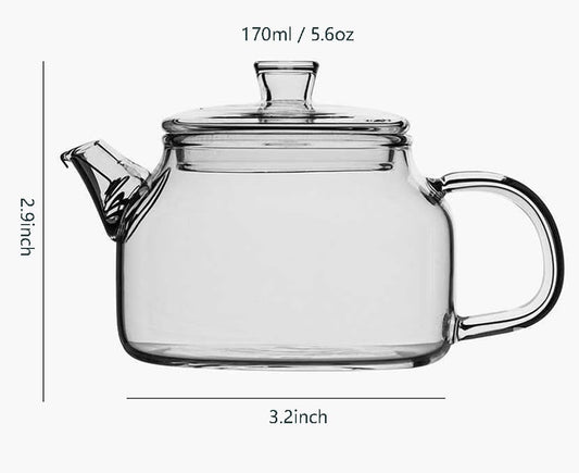 123Arts Mini Glass Teapot for One Person Use - 170ml/5.6oz