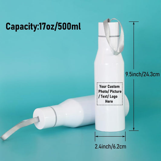 Personalized Stainless Steel Insulated Water Bottle with Custom Strap - 17 oz, Ideal Gift for Birthdays, Mother's Day, Christmas - Add Photo, Text, or Logo - Drasealand Custom Bottle