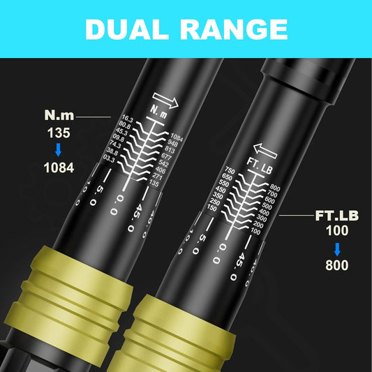 3/4-Inch Drive Dual-Direction Click Torque Wrench 100-800Ft-Lb/135.5-1084Nm Dual Range Scales for Car Truck Tractor