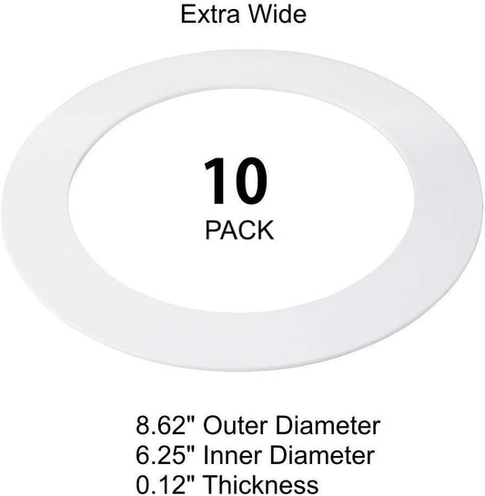 10 Pack Gloss White Goof Trim Ring for 8" Recessed Can Lighting - Outer Diameter 8.6" - Inner Diameter 6.2