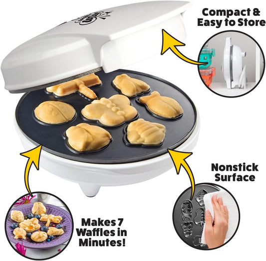 Electric Bug Waffle Maker - Make 7 Insect Shaped Pancakes - Nonstick Waffler Iron for Kids - Beetle, Ladybug, Bee & More - Fun Breakfast Treat