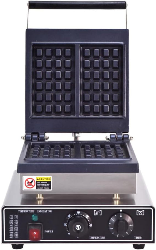 Square Belgian Waffle Maker for Thick Breakfast Waffles, Adjustable Temperature - 1750W - Makes 2 Slices in Minutes