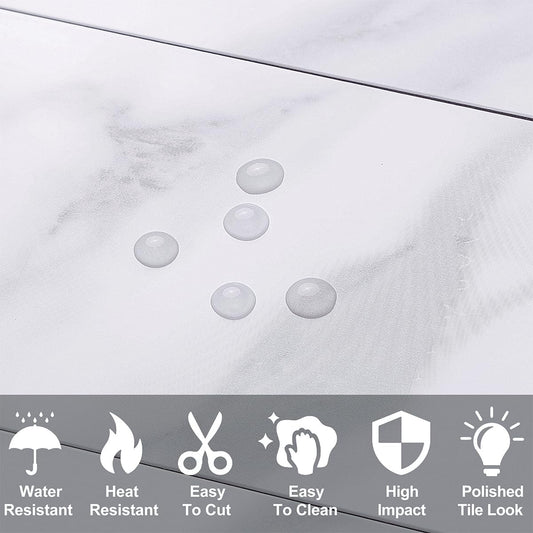 100-Piece Peel and Stick Backsplash Tiles - Polished White Marble Look, 3" x 6" PVC Tiles for Kitchen, Bathroom, Laundry Room, Fireplace - Easy Installation