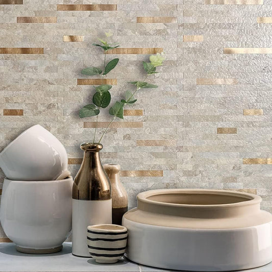 20 Sheets Beige Marble Peel and Stick Backsplash for Kitchen - Faux Stone PVC Wall Tiles