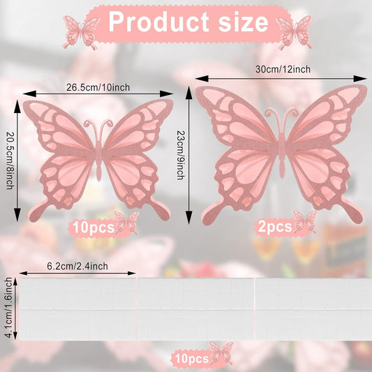 12-Piece 3D Large Butterfly Paper Sticker Set for Party Decorations - 2 Sizes - Champagne Color - Ideal for Birthdays, Baby Showers, and Weddings