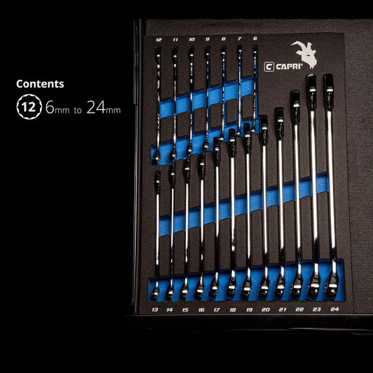 Capri Tools Metric Combination Wrench Set with Mechanic's Tray - 19 Piece Set, 6-24 mm CP11390MT
