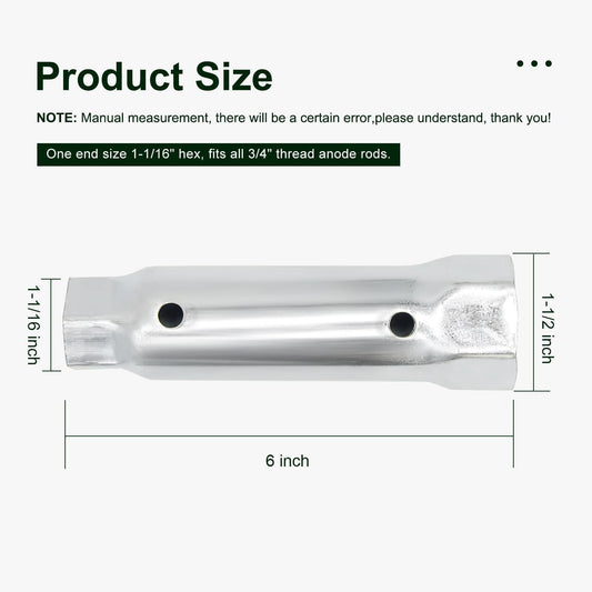 RV Water Heater Element Wrench Socket Tool for Anode Rod - Dual Hex Removal (1-1/16 x 1-1/2 x 6 in) - Residential & RV Camper Travel Trailer Motorhome